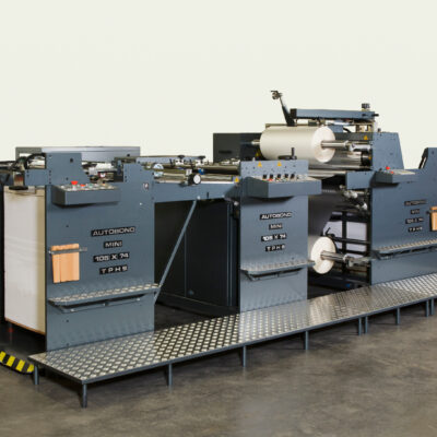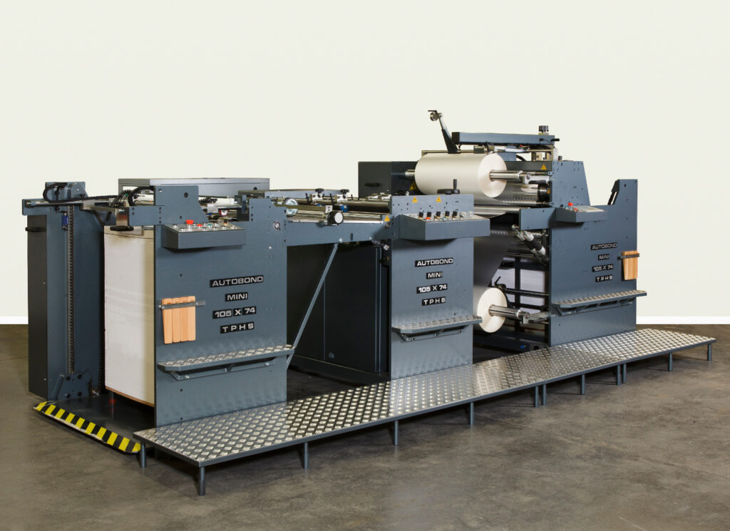 Autobond offers a wide range of laminating machinery. The Autobond Mini 105 TH is a quick make ready, extremely versatile thermal laminator, with excellent laminating productivity. This format laminator can run up to B1+ (29.5” x 41.73”) in landscape orientation, increasing maximum productivity on B1 sheets up to 5,000 SPH. It has a modular design to add options such as a perfector, stacker, in-line spot UV coating, or an in-line foiling machine. Please see below for more details on the Mini 105 TH thermal laminating machine.