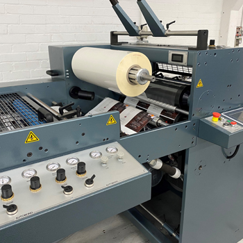 1 or 2 sided, sheet fed, thin film, thermal laminator for short and medium run lengths.
